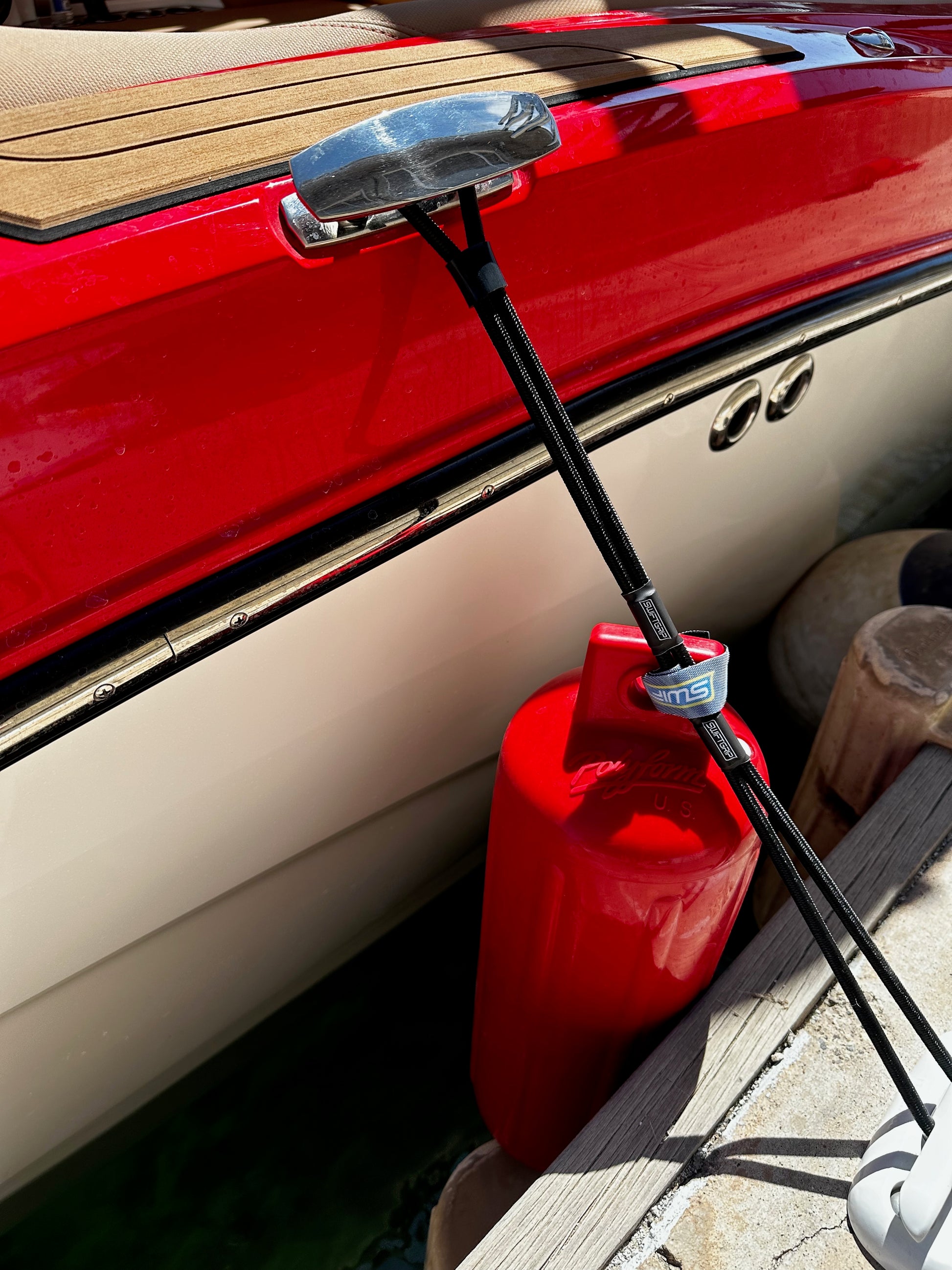 • All IN ONE BUNGEE DOCK LINES AND MORE: Each Kit includes (2) UV resistant 8mm Heavy Duty Bungee Ropes with integrated 8” Velcro straps on each end and a Hard Shell Storage case. Say Hello to the revolutionary Swift Grip Boat Dock Lines. Designed with evenly spaced sections along the 5 foot boat bungee dock lines for quick and easy docking, perfect for temporary docking. Swift Grip Ropes simplifies your fastening needs. These thick doubled up 8mm ropes have multiple options to secure.
